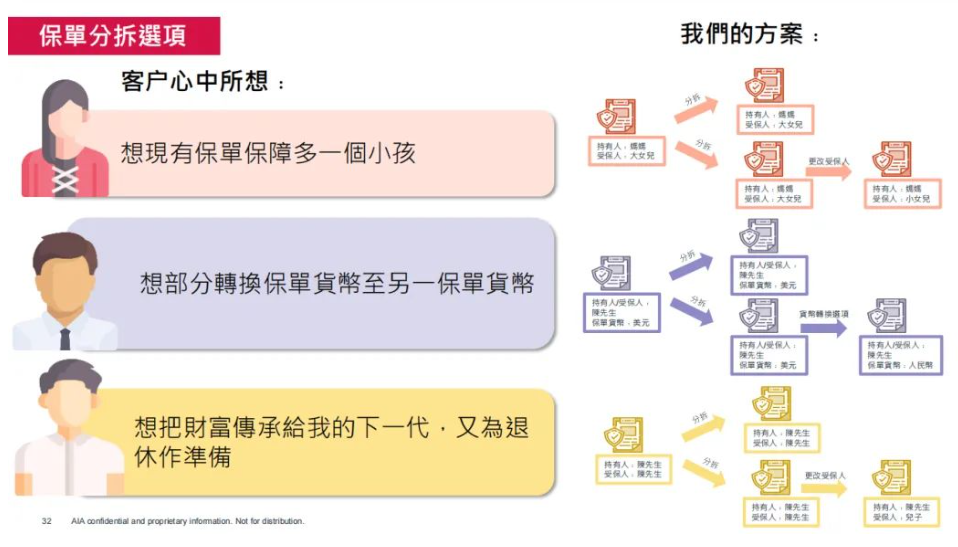 它允許保單持有人根據自身需求和目標,將原本的保單分解成多個部分,以實現更靈活、個性化的財富管理和保險規劃。